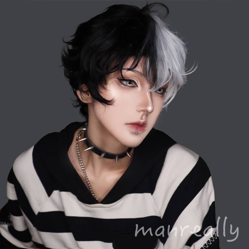 Short Straight Male Wig Black White Yellow Half Cosplay Anime Costume Halloween Wigs Synthetic Hair With Bangs For Men B Shopee Singapore